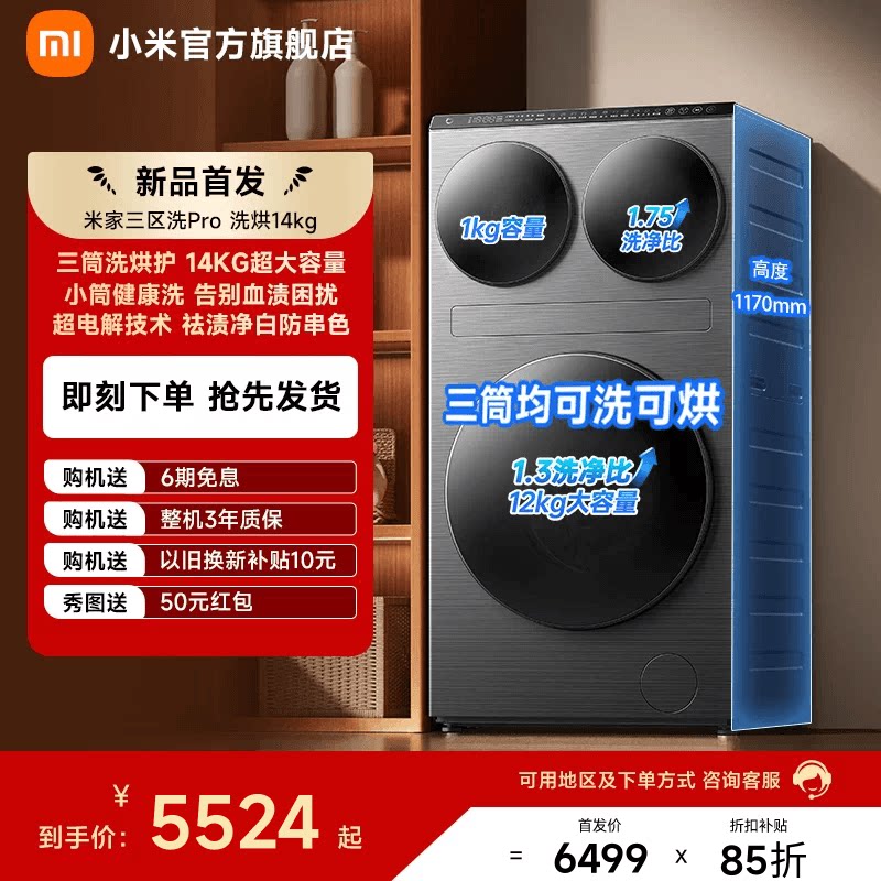 以旧换新补贴 小米米家三区洗衣机Pro滚筒14kg三筒洗烘护一体机
