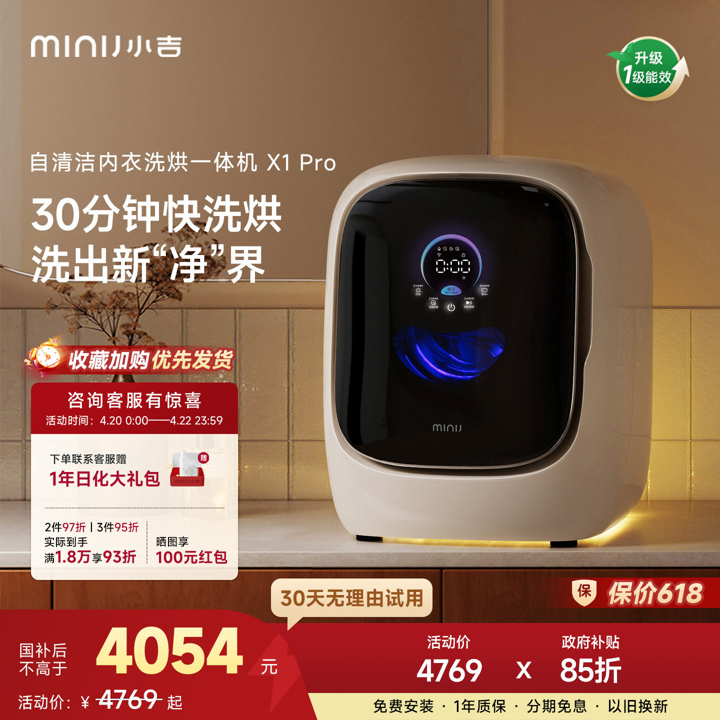 小吉1.2kg内衣洗烘一体全自动清洁除菌婴儿滚筒分区洗衣机X1Pro