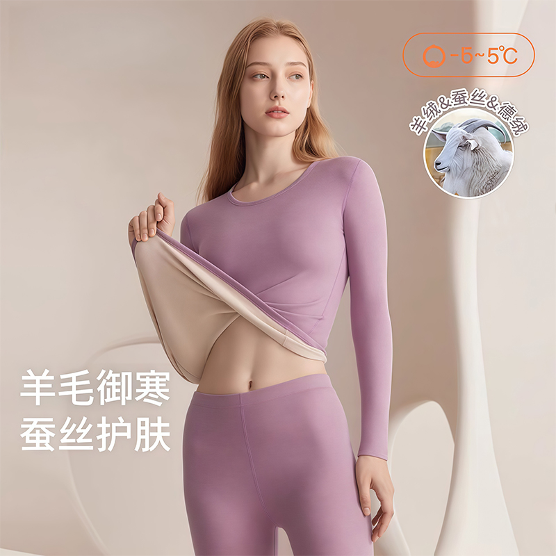 德绒发热保暖内衣女士2025秋冬季加绒加厚羊毛蚕丝秋衣秋裤套装