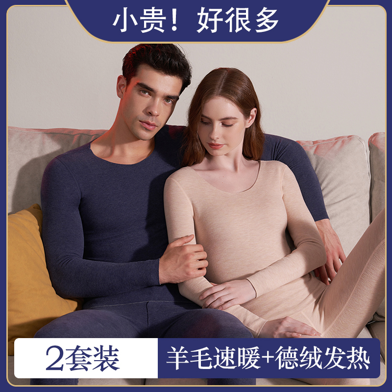 恒源祥加绒加厚保暖内衣女士德绒发热打底秋衣秋裤套装男冬季防寒