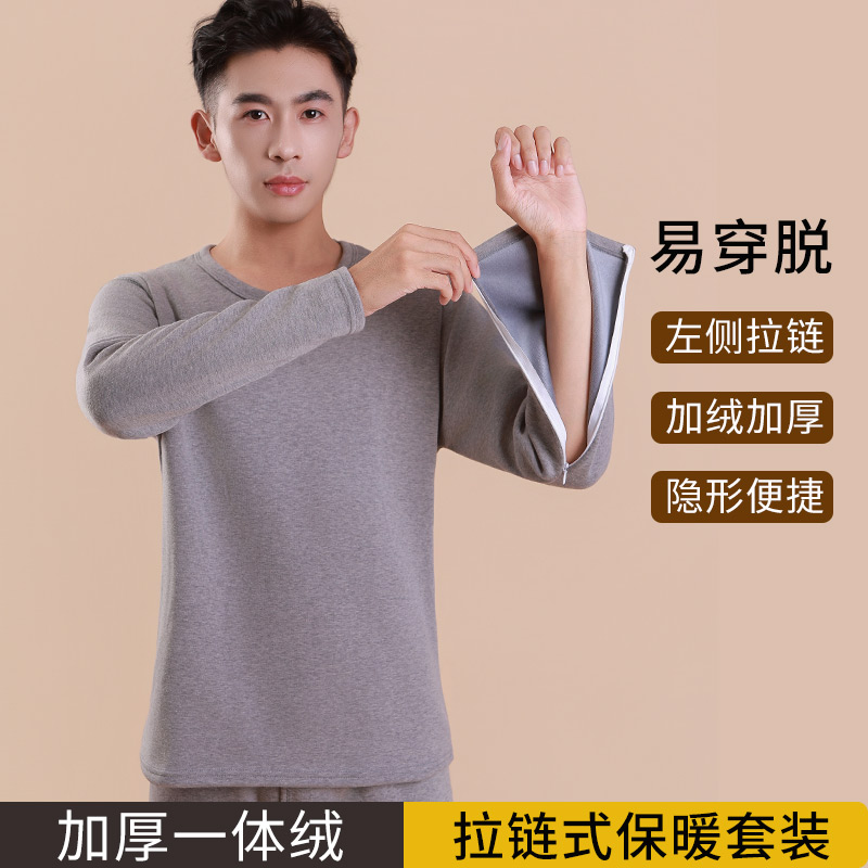 可开袖保暖内衣男加厚加绒透析用秋衣秋裤女冬季防寒打点滴免脱衣