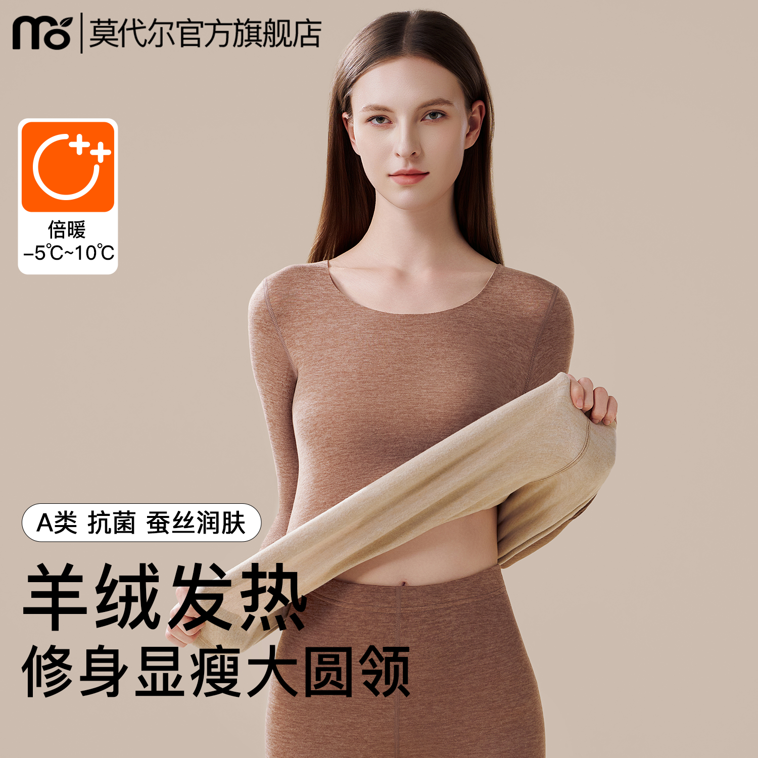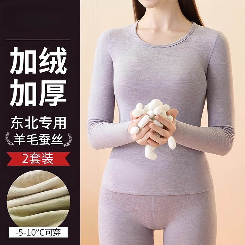 羊毛保暖内衣秋衣秋裤套装女士秋冬季加厚德绒发热保暖衣贴身蚕丝