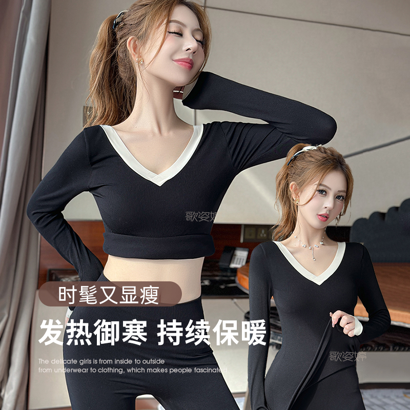 保暖内搭内衣女款冬季贴身发热加绒加厚打底衫上衣秋衣秋裤女套装