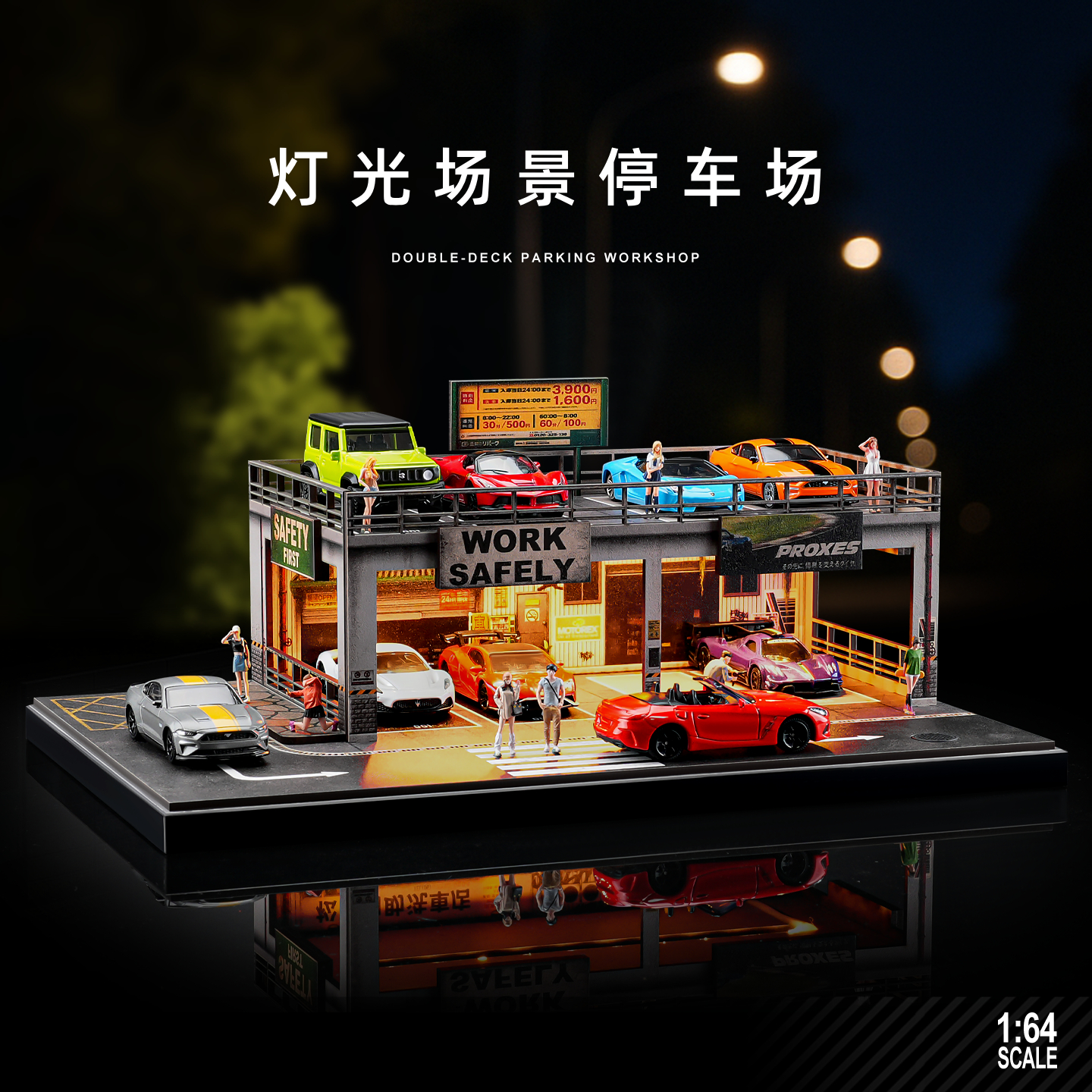 微缩场景1:64地下停车场模型车库改装房车位汽车模型防尘盒带灯