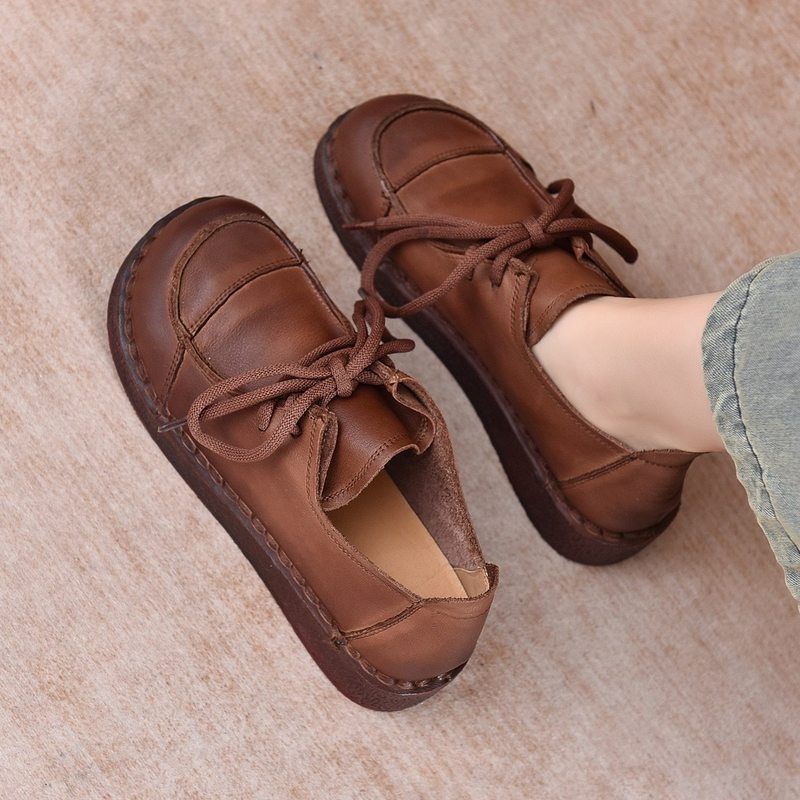 咖咪羽复古厚底板鞋头层牛皮大头丑萌休闲小众原创女鞋新款运动鞋