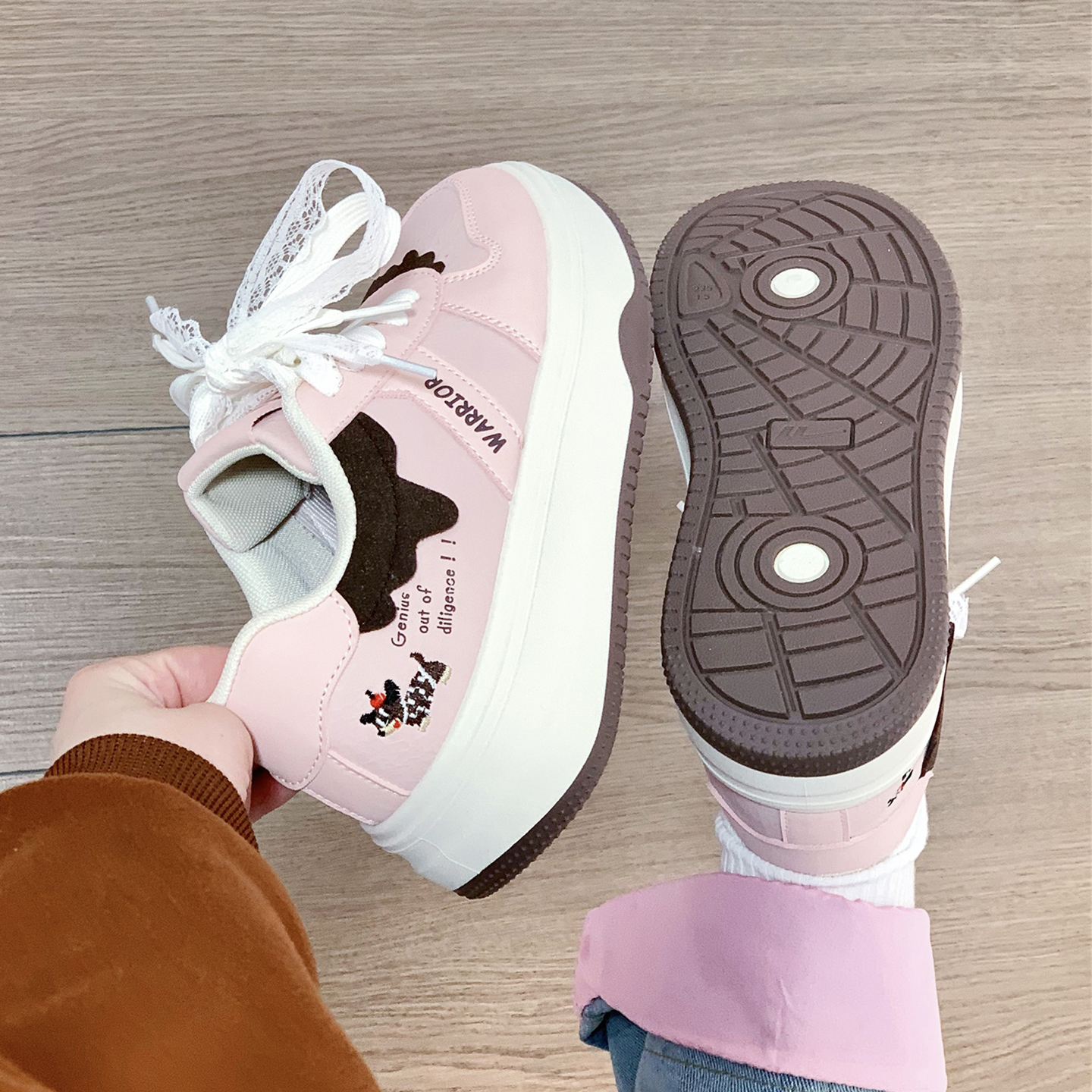 回力粉色卡通小白鞋女秋冬新款百搭鞋子小众原创女鞋休闲厚底板鞋