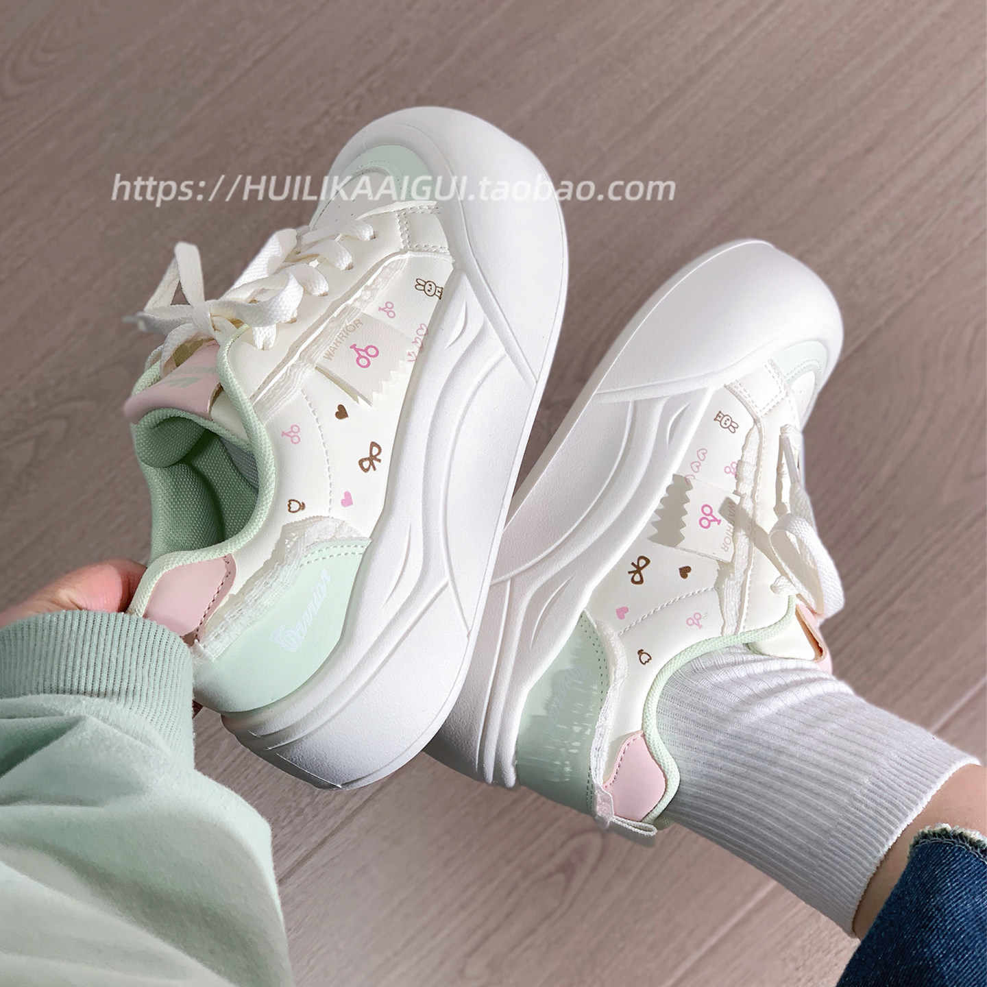 回力卡通厚底小白鞋女春季新款学生百搭鞋子小众原创女鞋增高板鞋