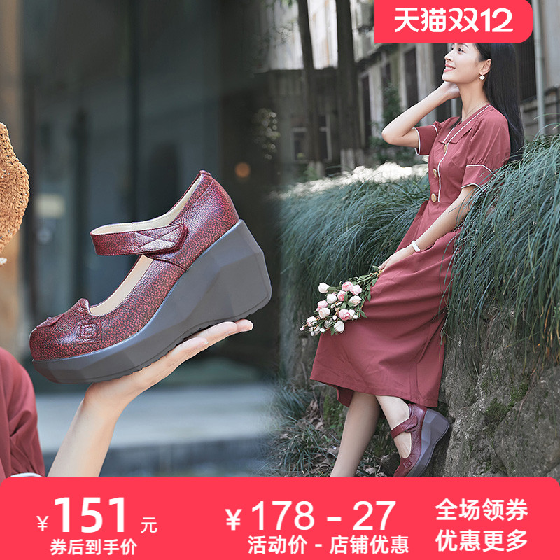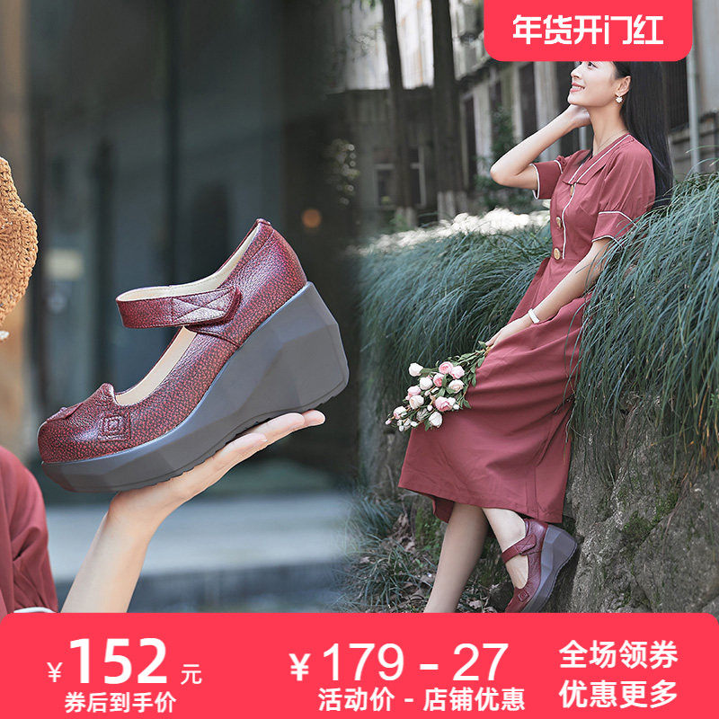 2025春秋季新款时尚厚底高跟羊皮单鞋女休闲圆头浅口原创女鞋皮鞋