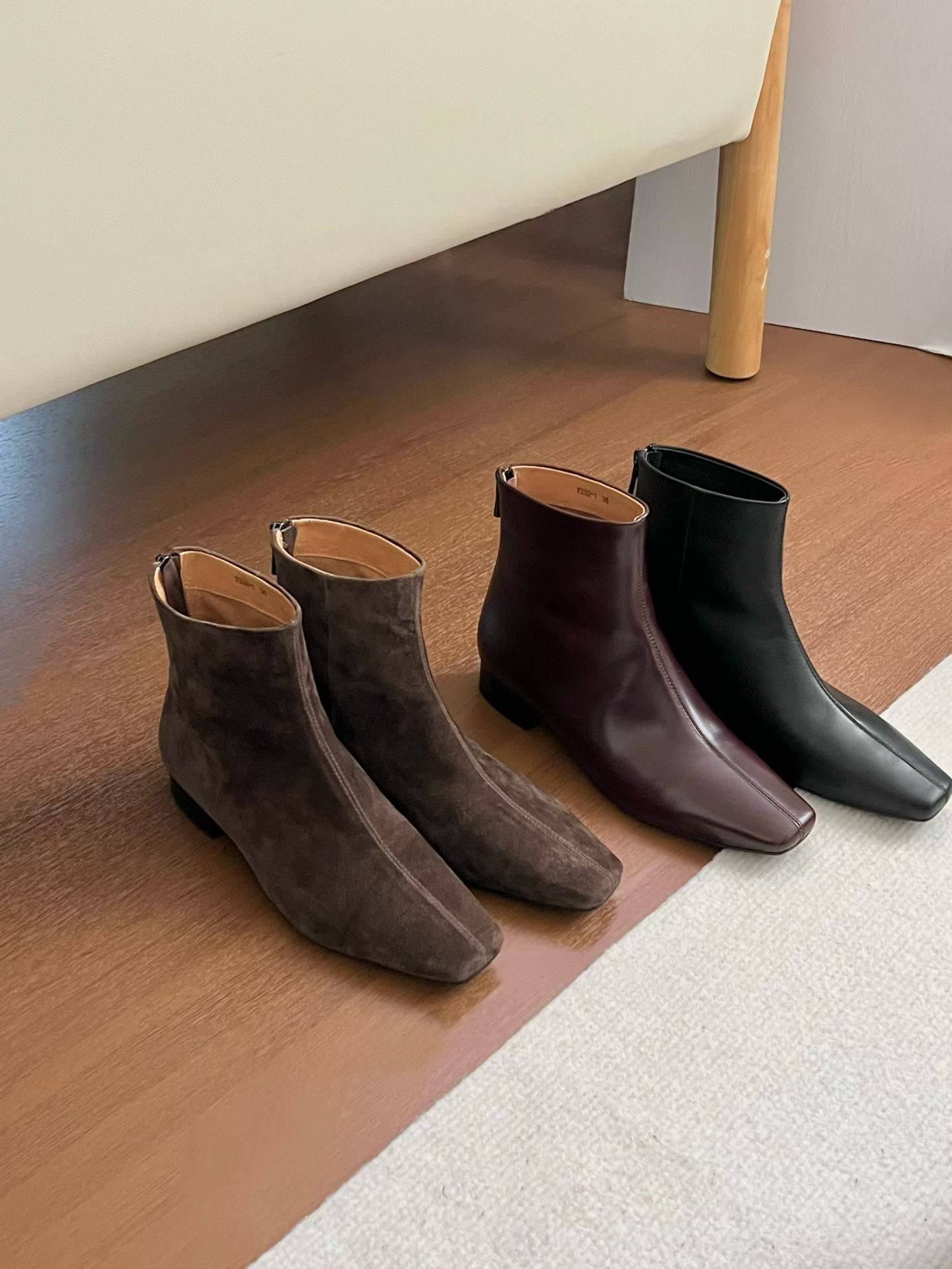 gelly原创女鞋2026年新款真皮短靴女韩版方头小及踝靴单靴瘦瘦靴