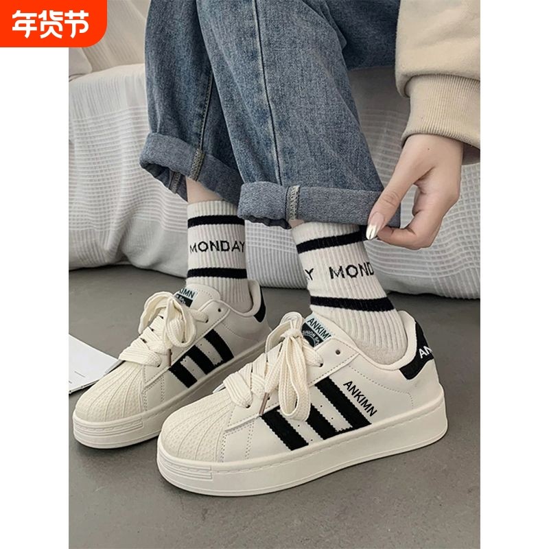 韩系贝壳头原创女鞋新款2025爆款时尚气质增高小众休闲百搭小白鞋