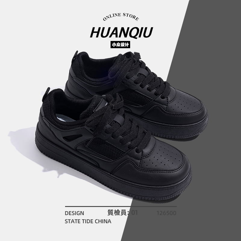 环球厚底小黑鞋女2025原创女鞋春秋新款百搭网面透气休闲黑色板鞋