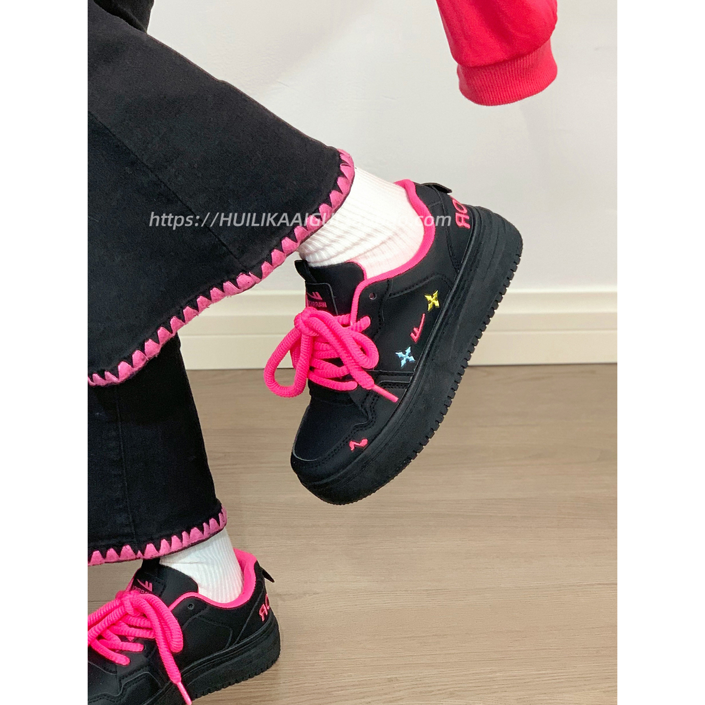 环球小众原创黑粉鞋子女款2025新款休闲秋冬女鞋百搭厚底运动板鞋