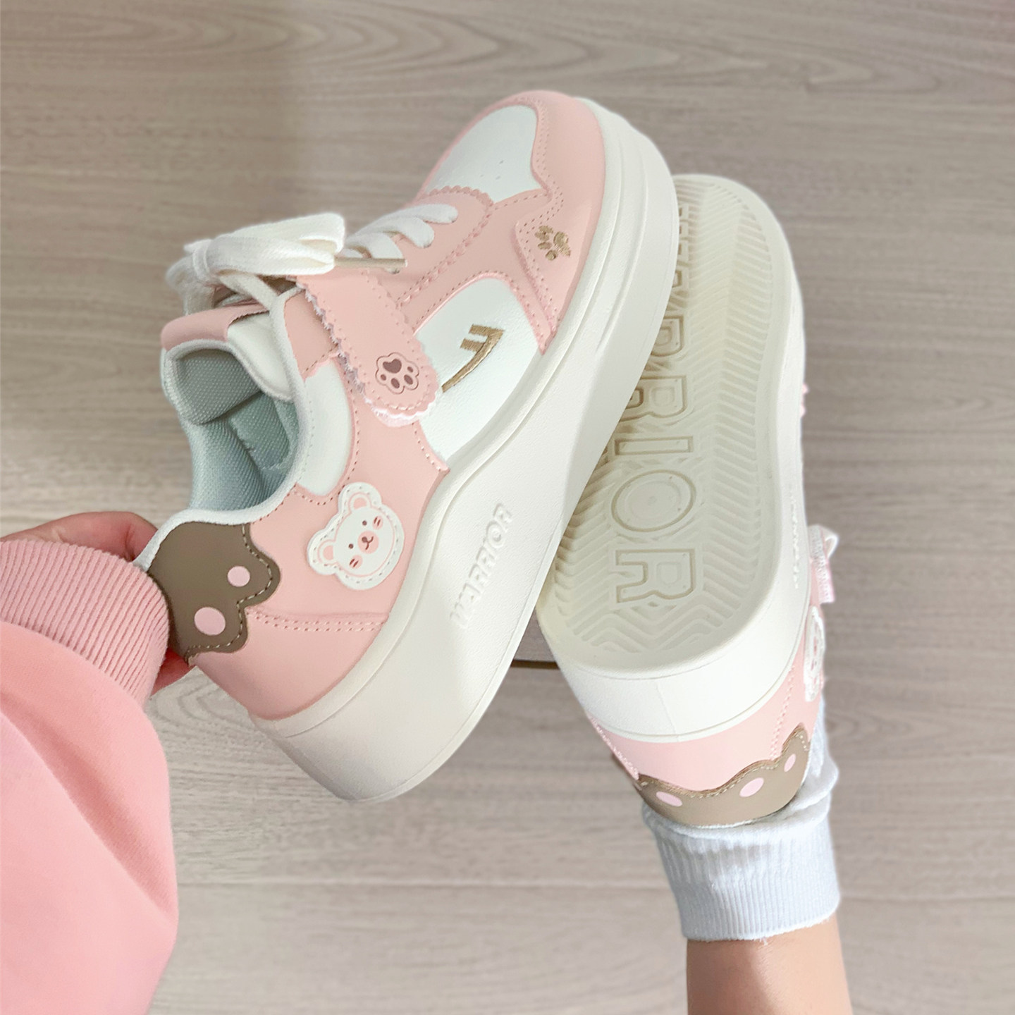 回力可爱小熊小白鞋女2026新款百搭厚底鞋子小众原创女鞋增高板鞋