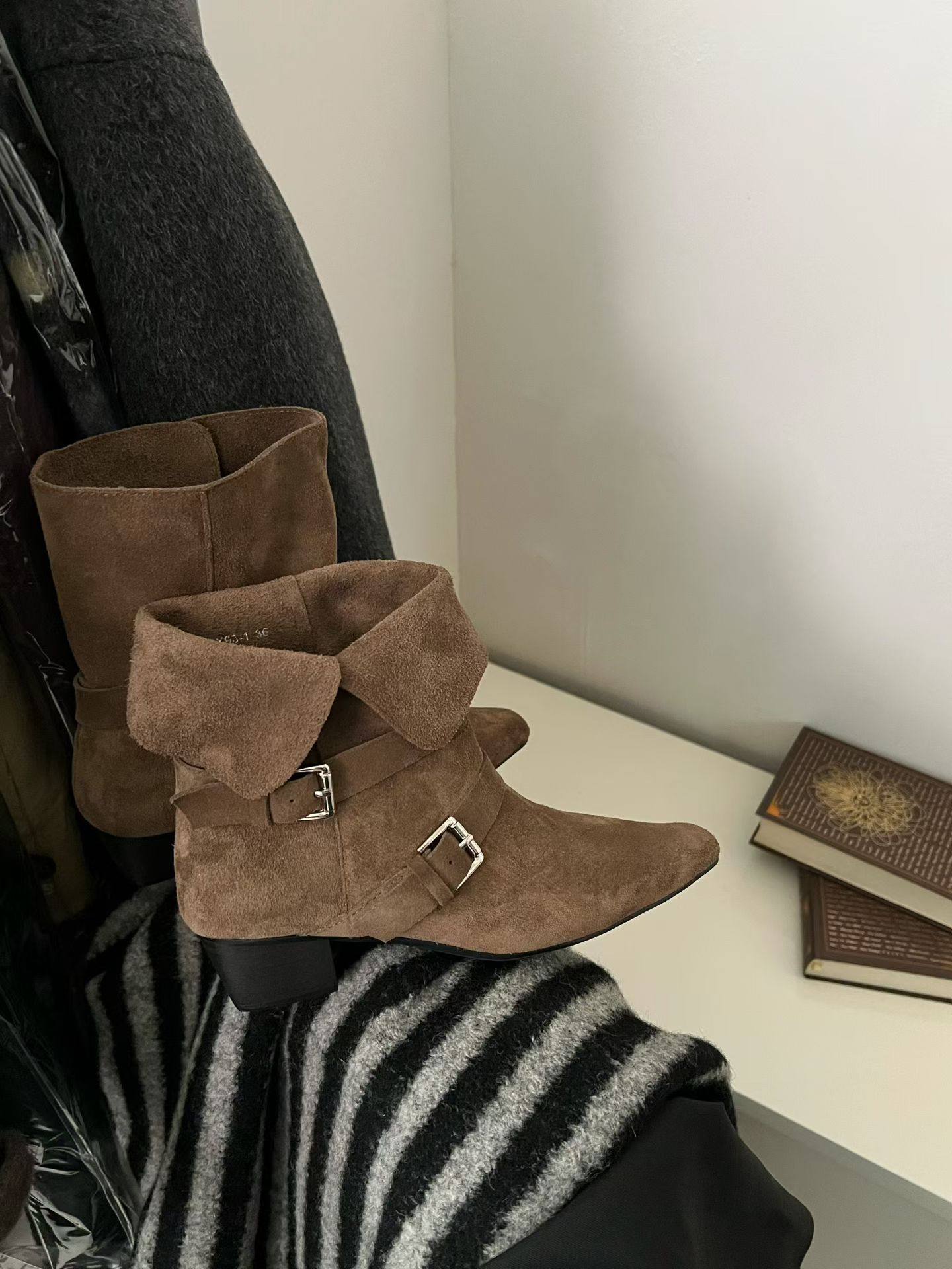gelly原创女鞋2025秋冬新款真皮短靴女韩版翻领两穿小众西部靴女