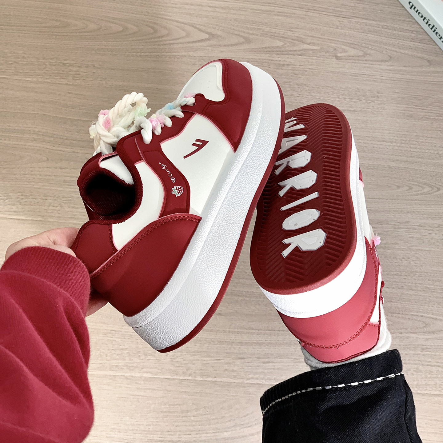 回力酒红厚底小白鞋女新款2026春季百搭鞋子小众原创女鞋休闲板鞋