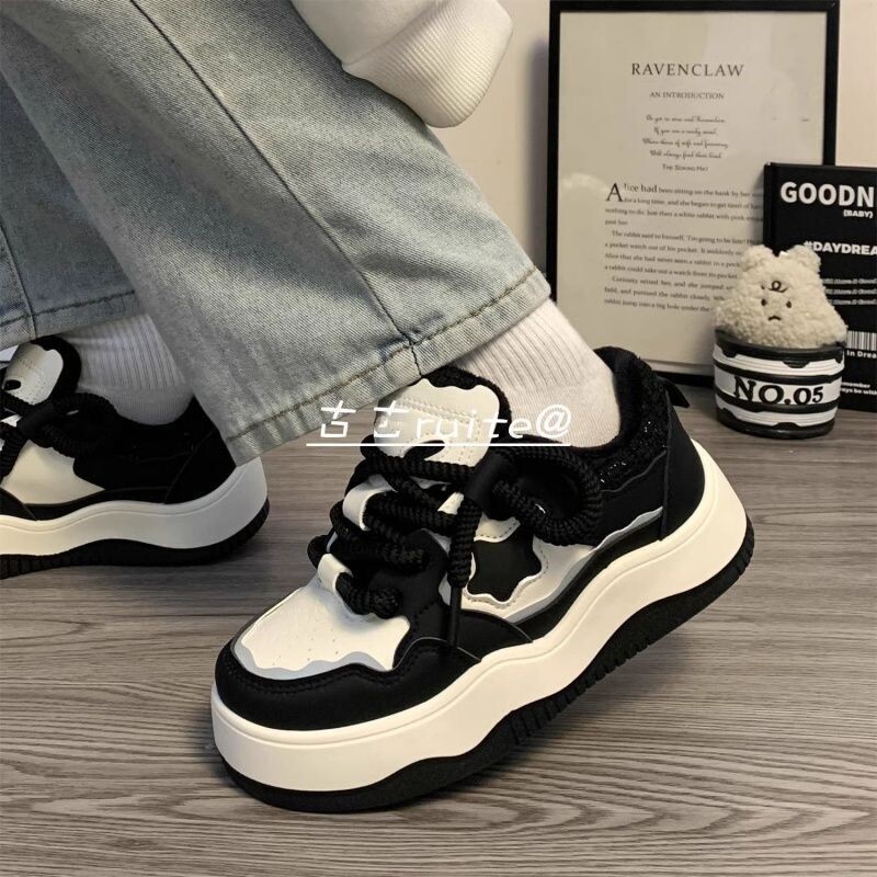 美式复古面包鞋女秋季黑白熊猫学生鞋子小众原创女鞋休闲鞋女板鞋
