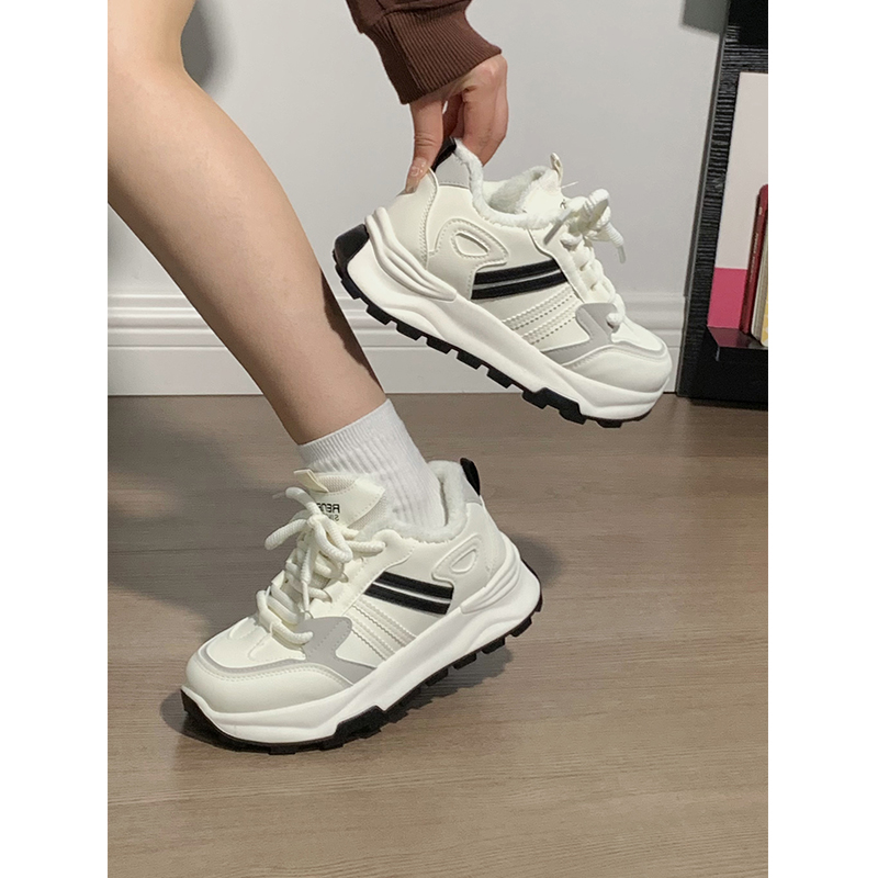 人本加绒老爹鞋女秋冬新款百搭二棉鞋子小众原创女鞋轻便运动鞋女