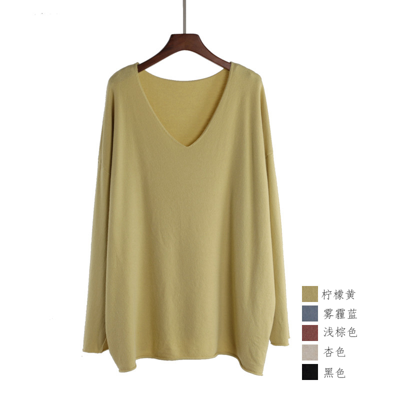 大码胖妹妹慵懒风V领针织毛衣打底衫女秋冬季内搭气质显瘦上衣服