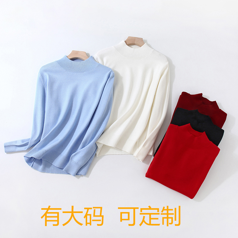 大码胖妹妹半高领套头针织打底衫毛衣女秋冬新款长袖内搭保暖上衣