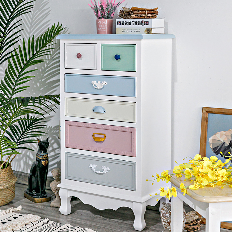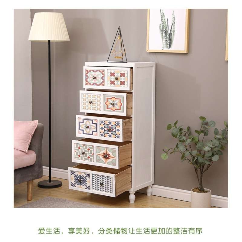 地中海彩绘卧室收纳柜子储物客厅彩绘五斗柜美式斗柜实木装饰柜子