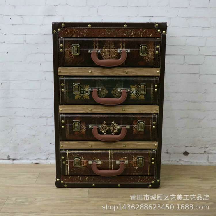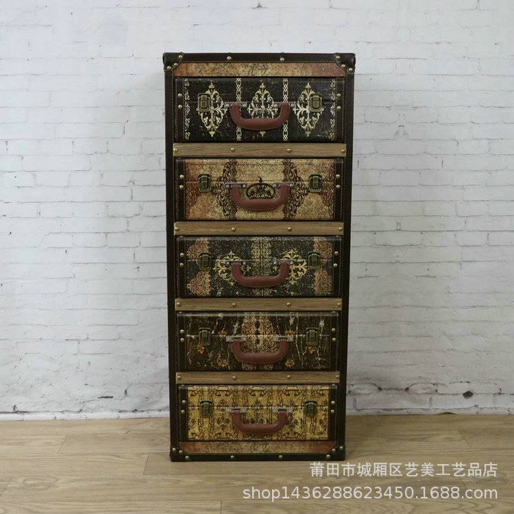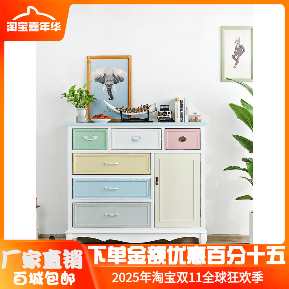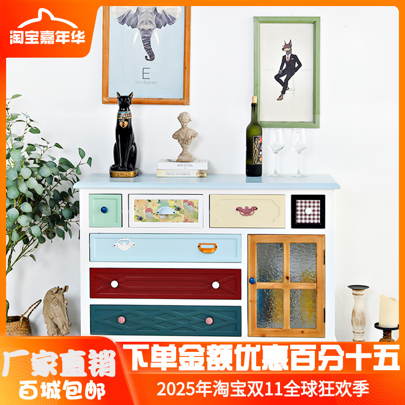 实木地中海收纳柜储物柜复古斗柜做旧美式客厅阳台柜玄关抽屉柜子