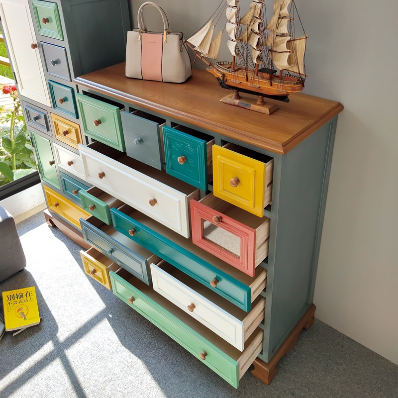 美式乡村五斗柜实木地中海抽屉式玩具收纳柜玄关柜储物柜复古柜子