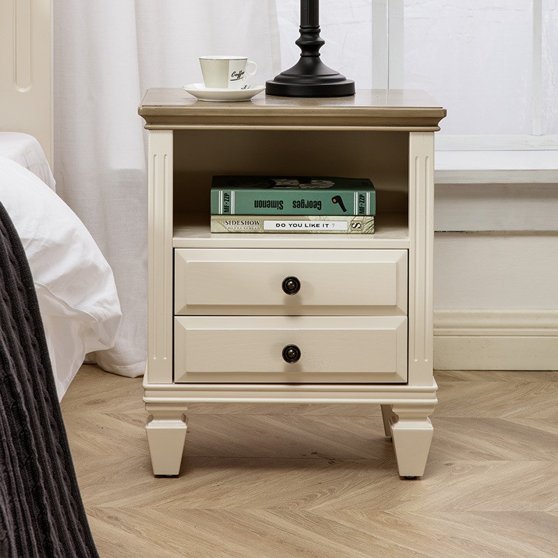 双抽床头柜美式实木小柜子卧室储物柜床头边柜欧式简约地中海乡村