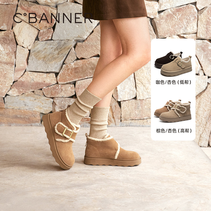 千百度厚底时尚雪地靴女2025冬季新款增高保暖棉鞋平底暖暖短靴