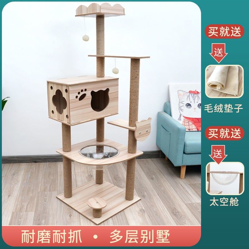 新疆包邮猫爬架太空舱猫窝猫树一体大型实木别墅猫架猫抓柱猫用品