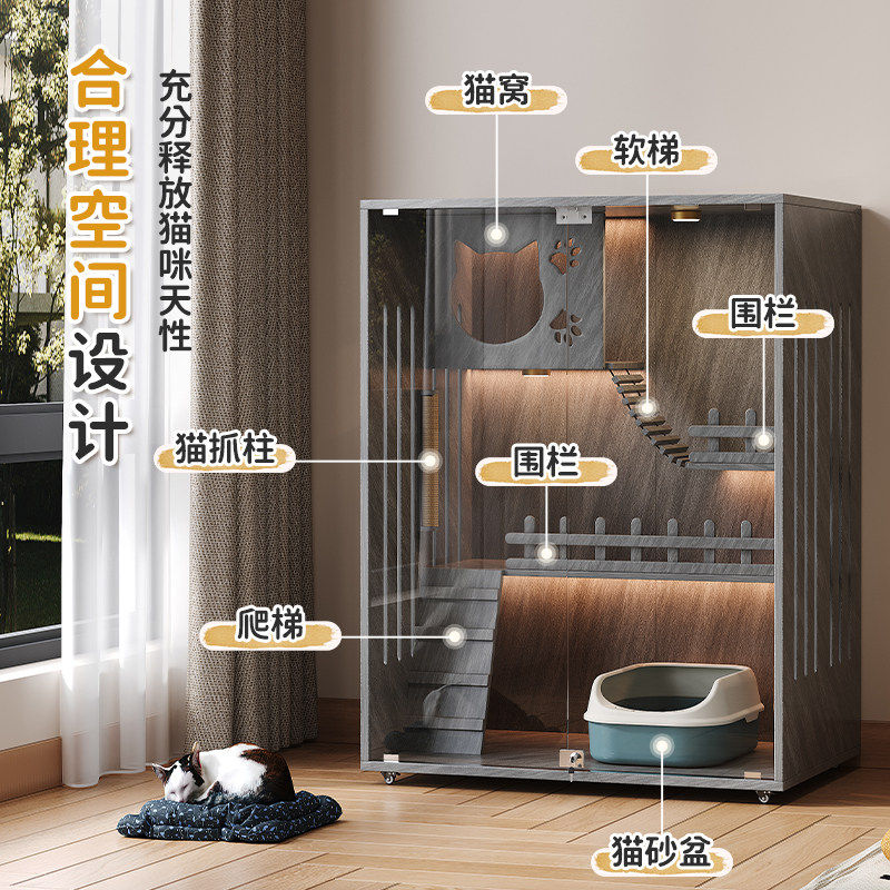 新疆包邮猫爬架猫别墅实木家用室内超大自由空间两层豪华猫舍猫柜