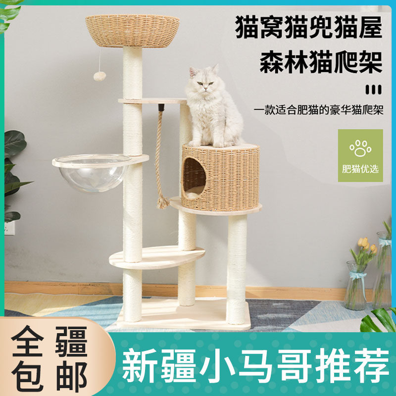 新疆包邮猫爬架大型猫窝四季通用猫树一体超大太空舱猫抓板猫别墅