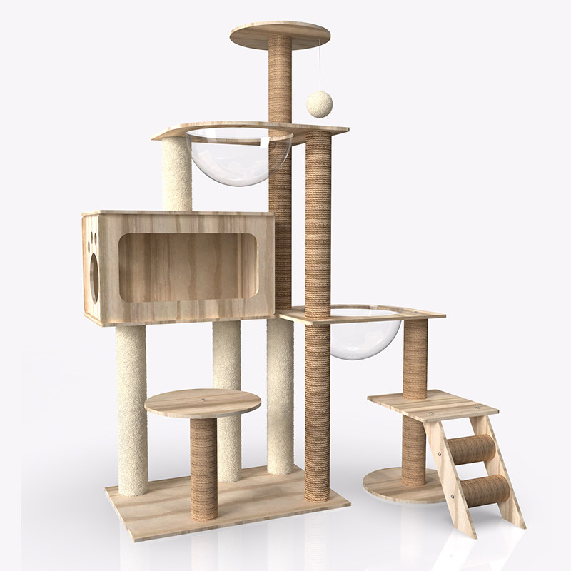 新疆西藏包邮猫爬架太空舱猫窝猫树一体大型实木别墅猫架猫抓柱猫