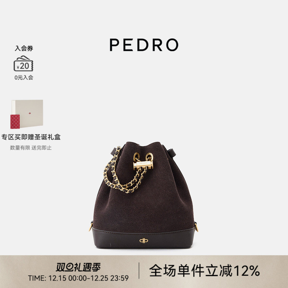 圣诞礼物PEDRO抽绳水桶包ICON双肩包冬女包链条包PW2-15210022-1