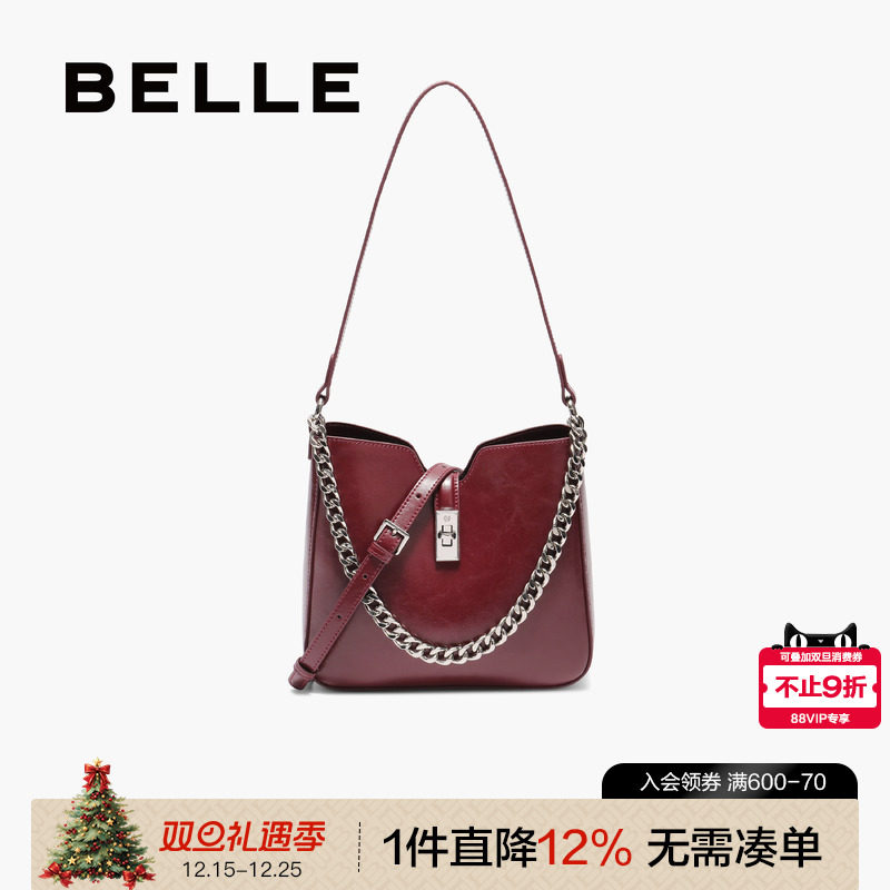 百丽包包女新款商场同款斜挎水桶包红色婚包链条包托特包BL837CX5