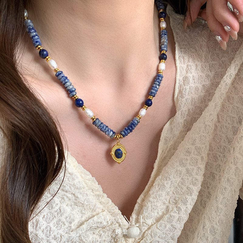 挽里蓝色天然石夸张项链2026新款爆款高级感轻奢小众秋冬女款饰品