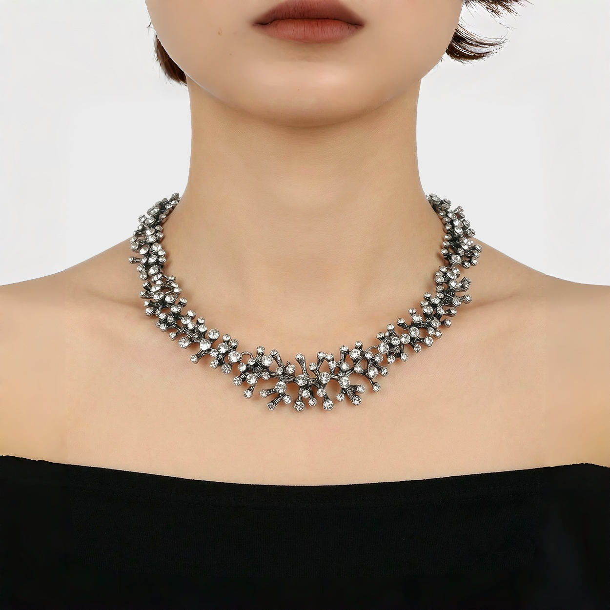 ZA新款闪亮水钻枝蔓立体贴颈链女复古欧美夸张项链气质小众锁骨链