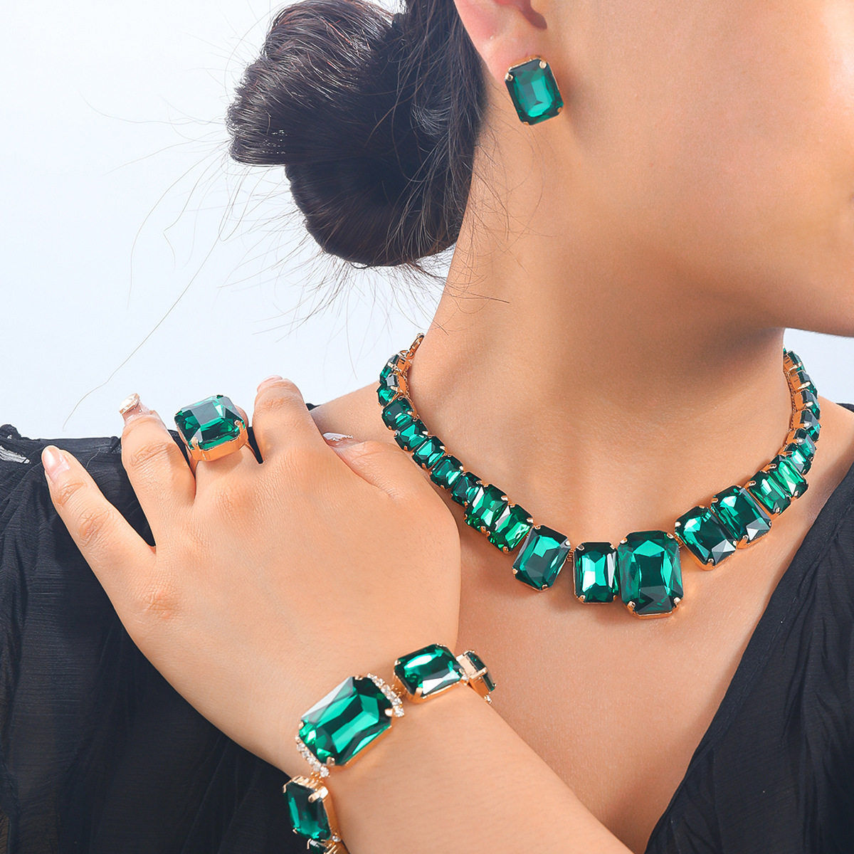 zoozmomo欧美夸张项链耳环套装女绿色宝石锁骨链高级礼服宴会颈链