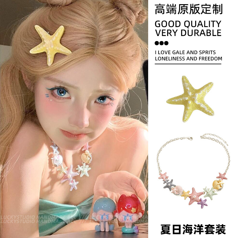海岛度假风贝壳海星项链女海边三亚出游长款配饰氛围感夸张锁骨链