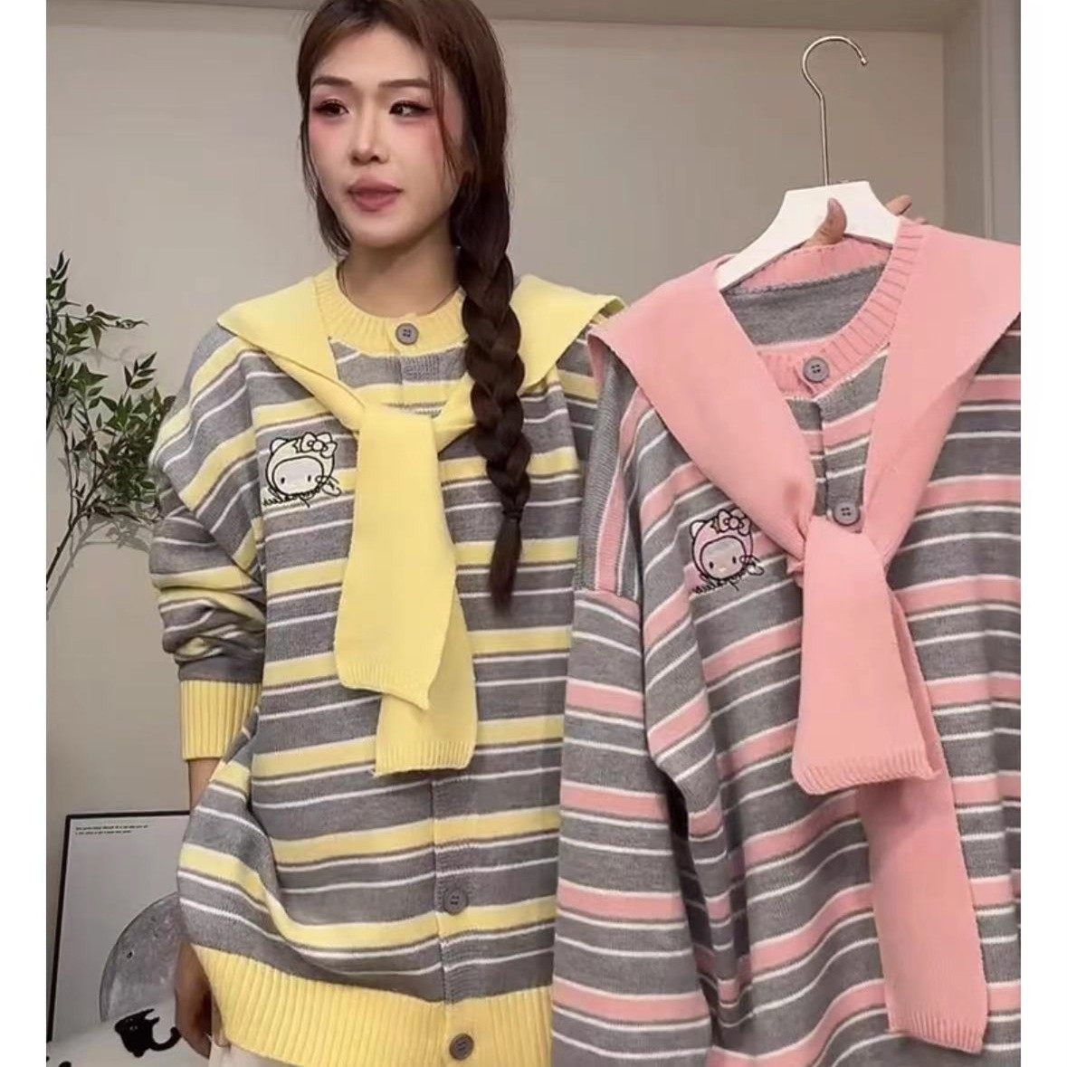 原创JK制服2024春秋学生韩版宽松学院风校供感长袖百搭毛衣开衫女