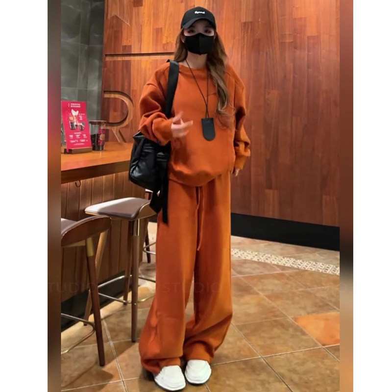 欧洲站休闲运动套装女秋冬2025新款宽松显瘦加绒卫衣阔腿裤两件套