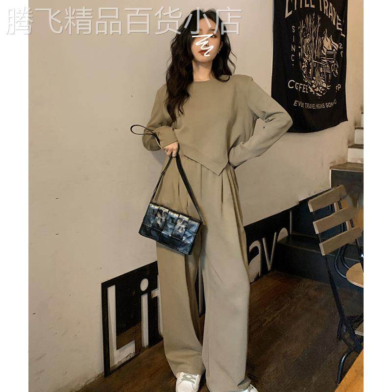 欧洲站2025秋冬新款时尚百搭显瘦针织衫+阔腿裤套装女慵懒风上衣