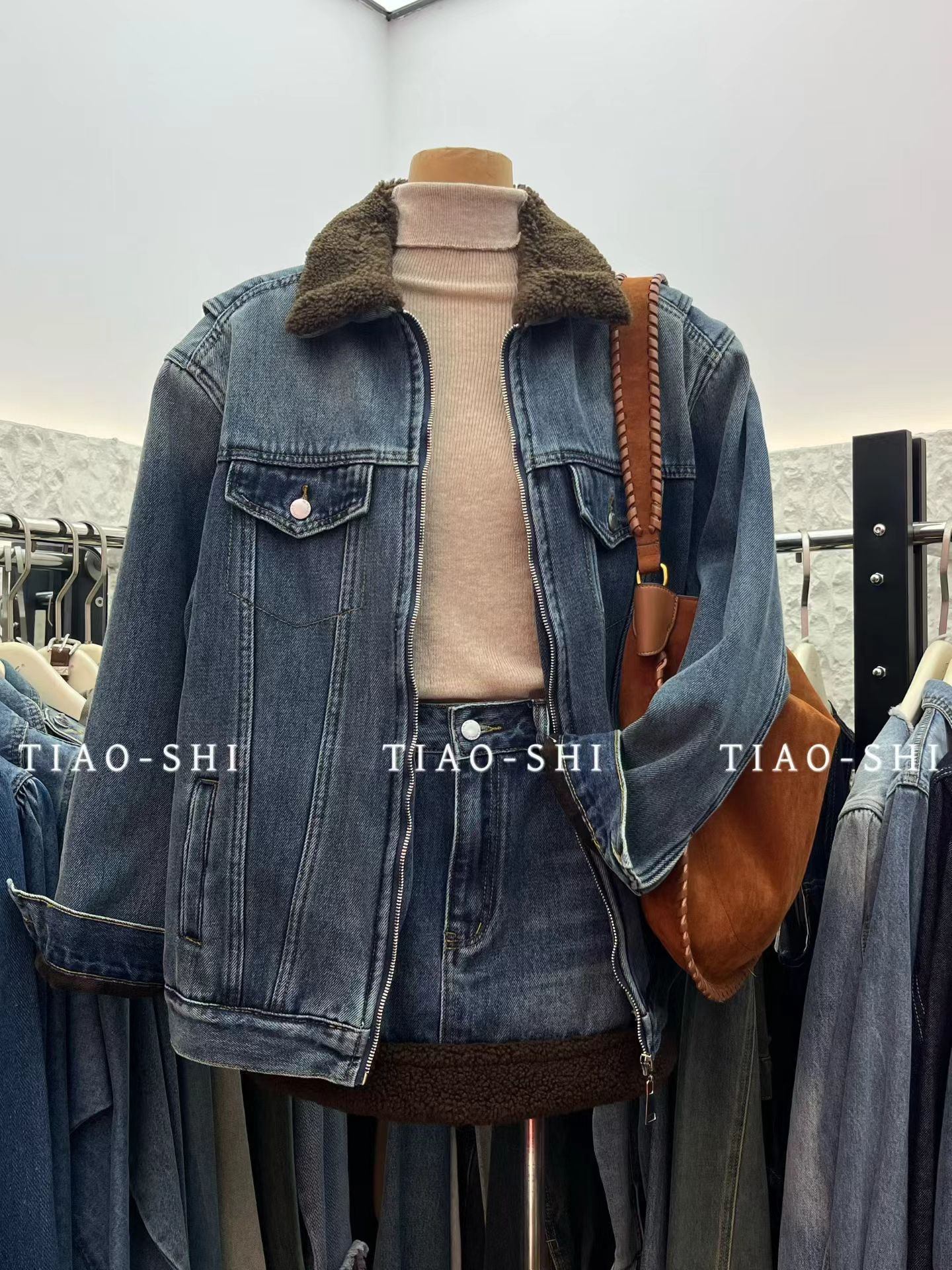 欧洲站2025秋冬新款百搭加绒加厚牛仔外套夹克上衣牛仔半身裙套装