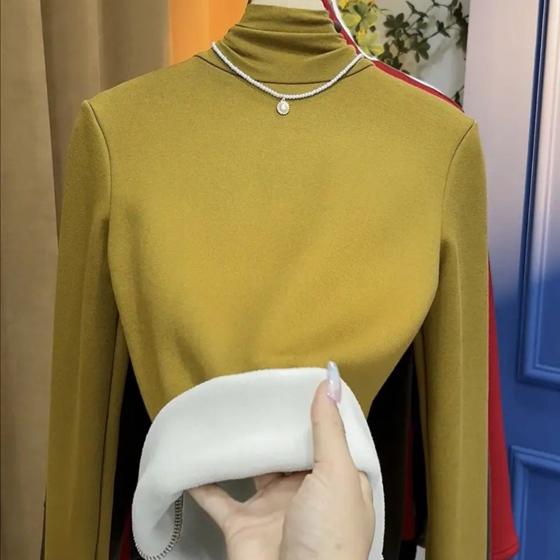 秋冬款元熙高领加绒磨毛绒打底衫堆堆领修身显瘦加绒内搭长袖上衣