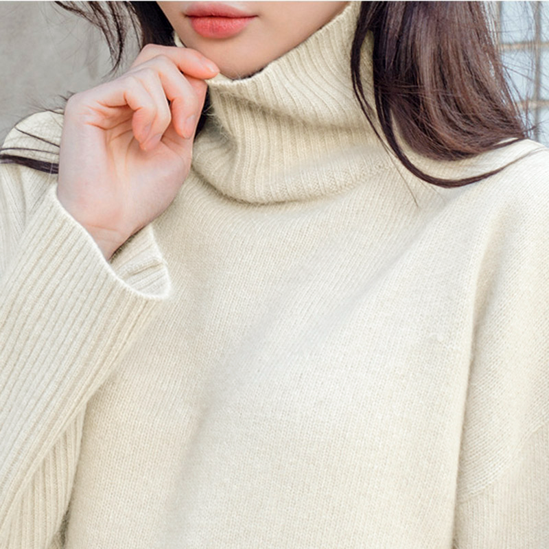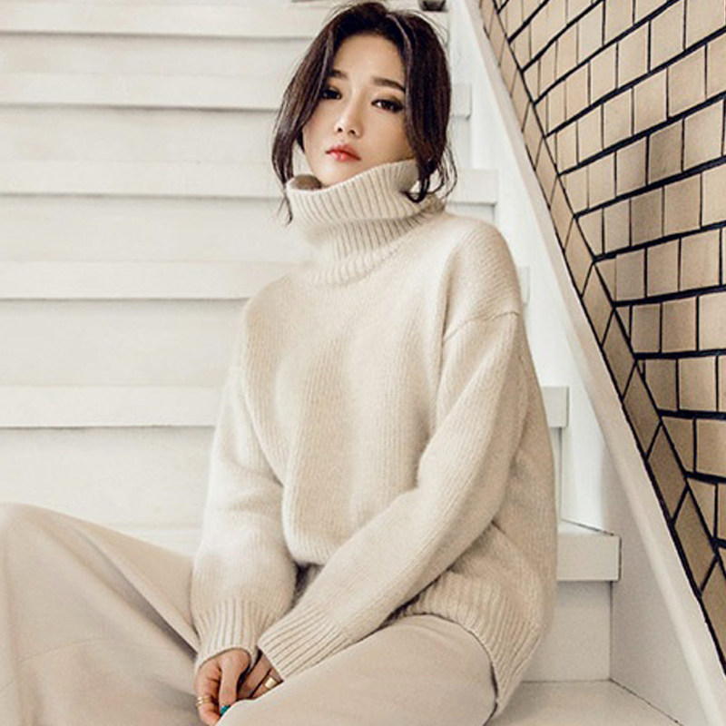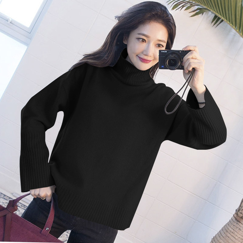 高领毛衣女秋冬新款宽松型慵懒风针织衫加厚百搭堆堆领长袖打底衫