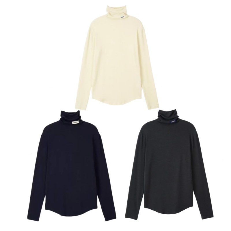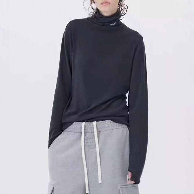 韩国小众NOH*秋冬纯色简约贴布字母高领堆堆领长袖打底衫T恤男女