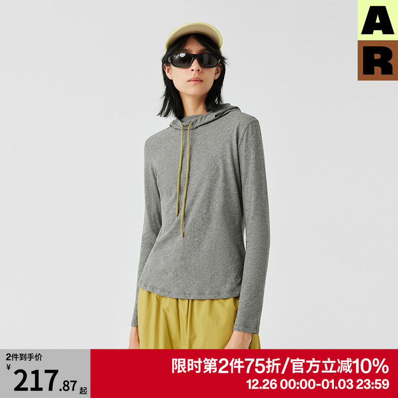 【第二件75折】AR原创连帽堆堆领长袖打底衫女/显瘦T恤灰色卫衣