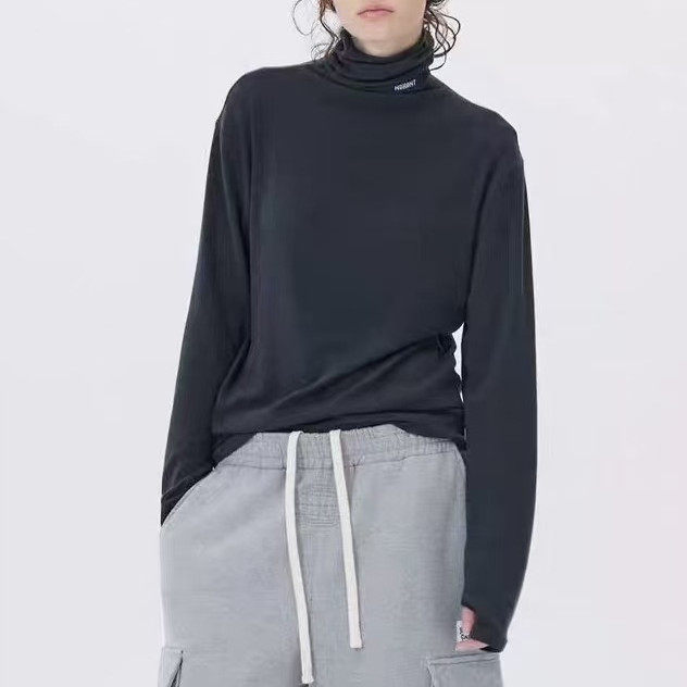 ~~~~~韩国小众 25新款 简约贴布字母高领堆堆领长袖打底衫T恤