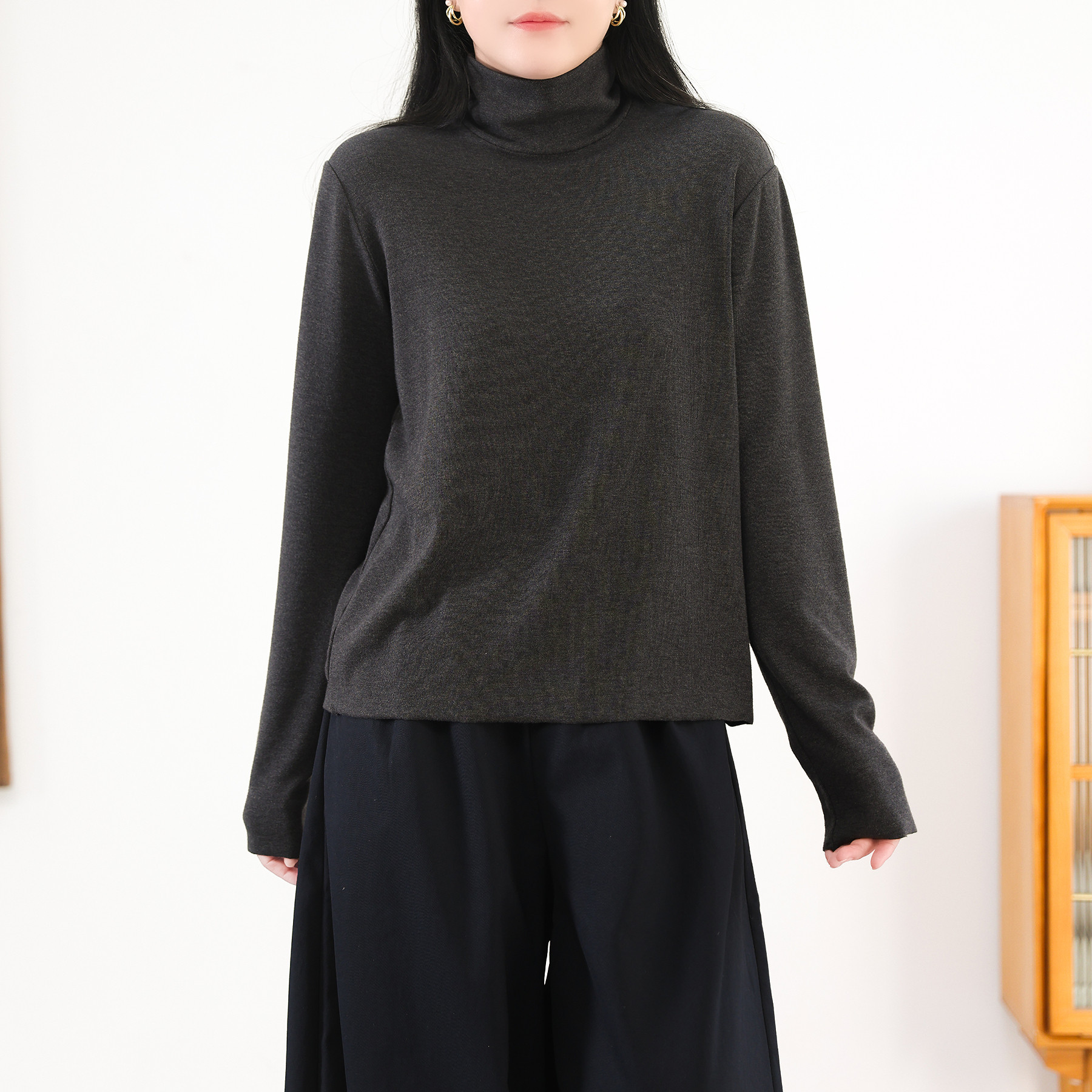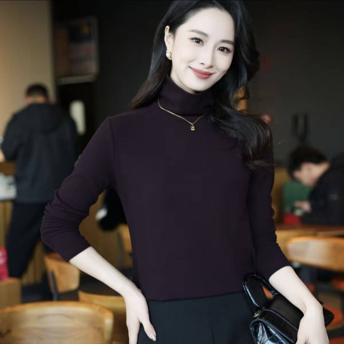 岳岳家105秋冬新款堆堆领长袖打底衫女修身显瘦上衣女t恤2025潮