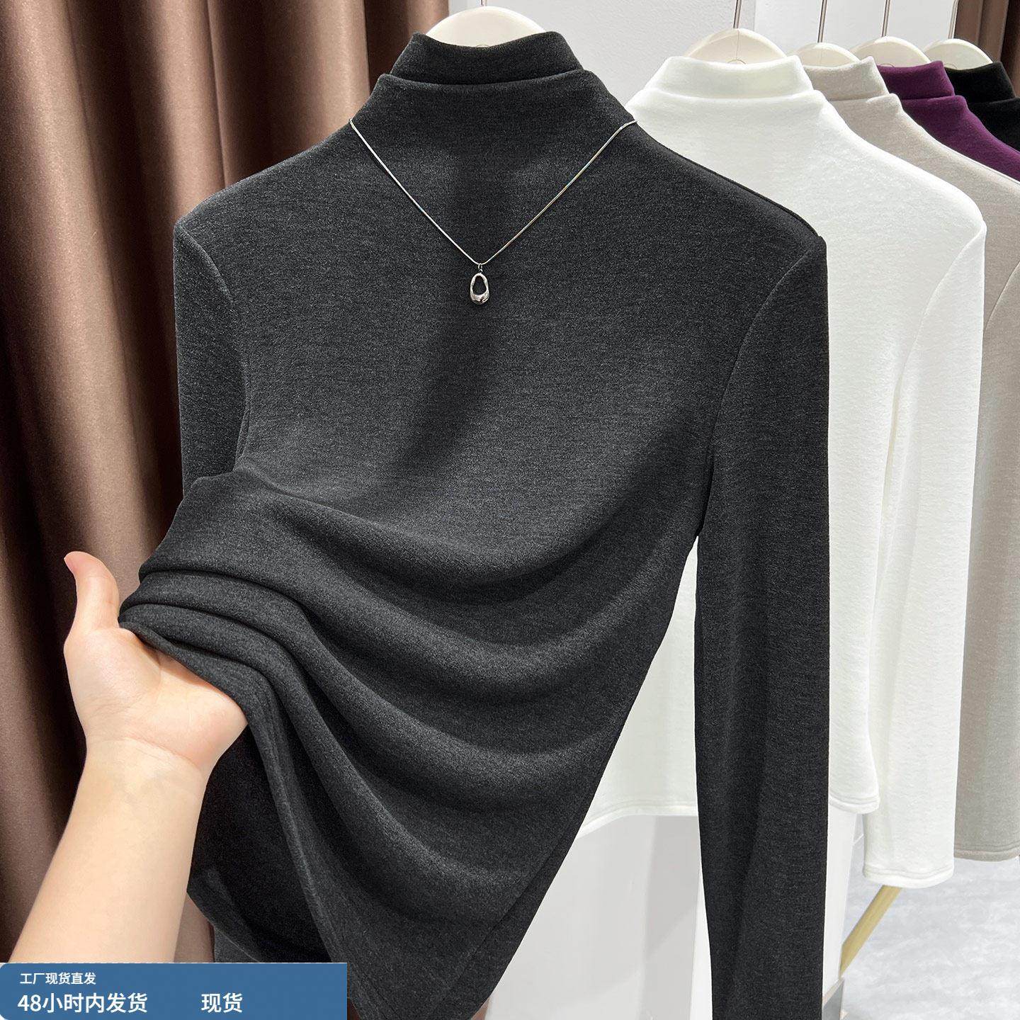 堆堆领长袖打底衫女秋冬弹力修身内搭保暖高级感纯欲德绒气质上衣