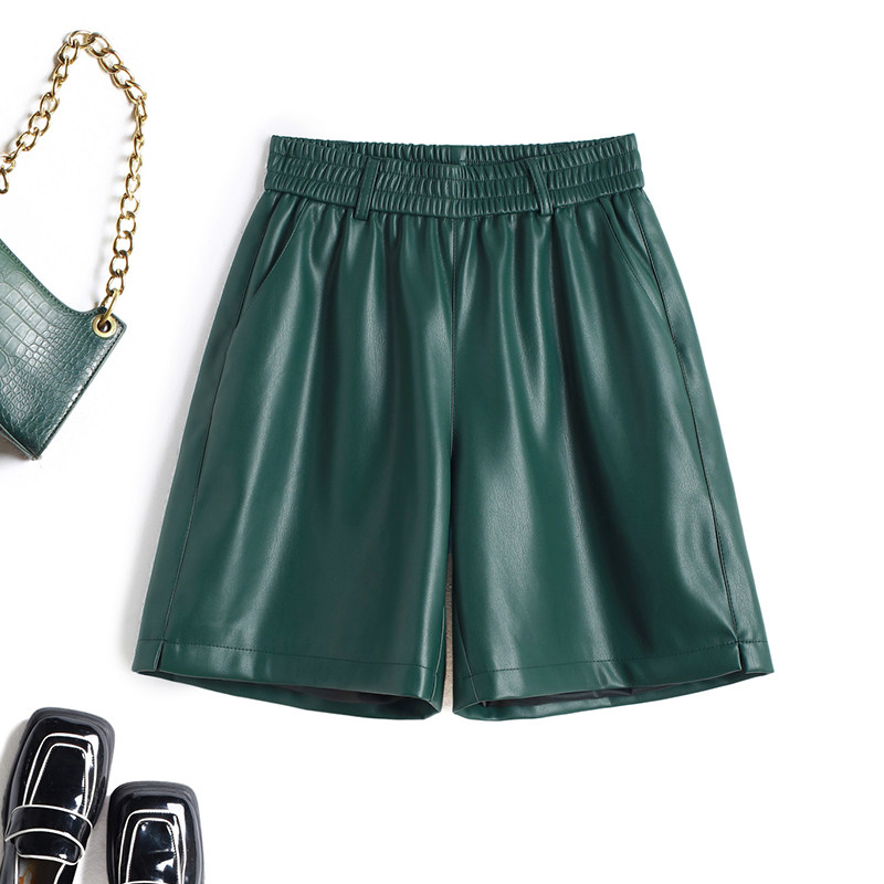 真皮短裤女宽松阔腿时尚气质高腰外穿绵羊皮秋冬新款松紧腰皮短裤